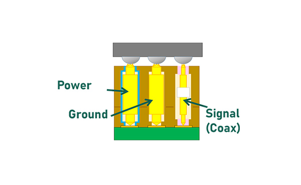 Coaxial test probe is a special probe designed for high-frequency signal testing. It forms a coaxial structure (inner conductor + insulating layer + outer shielding wall) together with the test socket through a special structure, achieving low-loss and low-distortion signal transmission, and is widely used in tests of high-speed digital circuits and other fields.